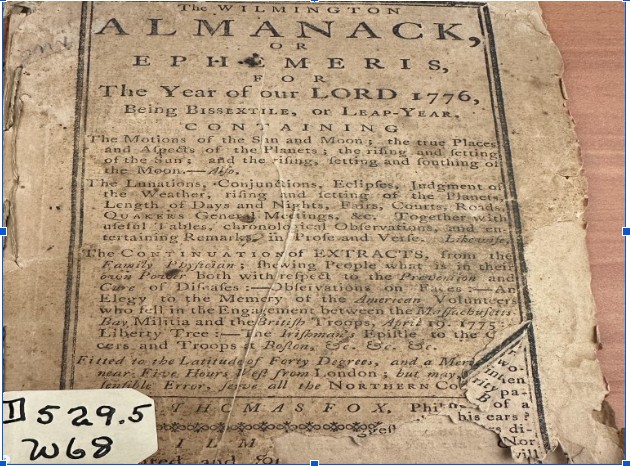 The DAS Library initiated a research collaborative and transcription project for Delaware's first almanac, The 1762 Wilmington Almanac printed by James Adams, Delaware's first printer who trained at Franklin & Hall in Philadelphia--yes, Benjamin Franklin's printing house. Address enquiries to